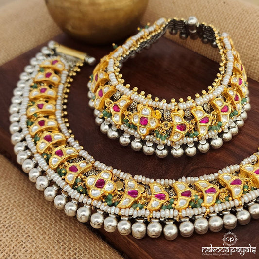 Dual Tone Kundan Anklets (A6214)