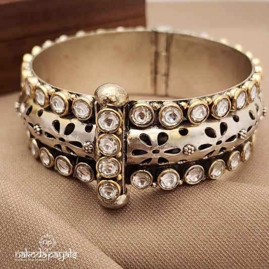 Elegant Floral Chitai Adjustable Cuff Kada (K6032)