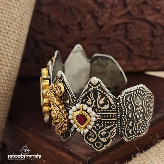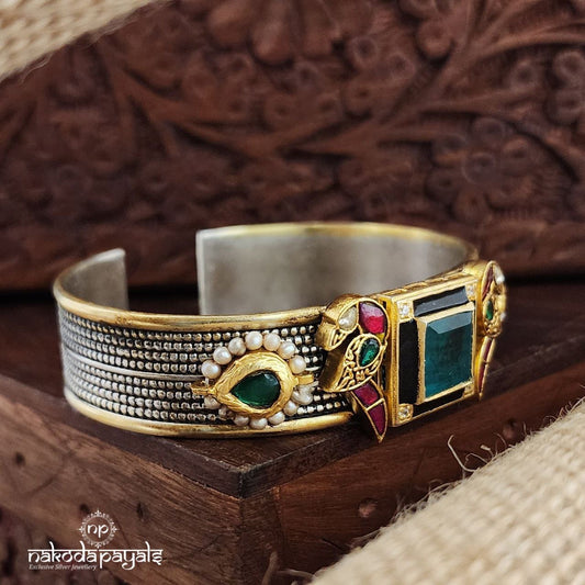 Graceful Peacock Kundan Dual Tone Adjustable Kada (K6024)
