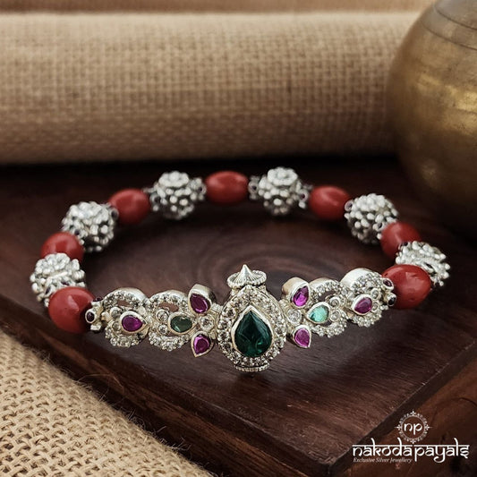 Gulaab Birdie Pearly Kundan Dual Tone Adjustable Kada (K6016)