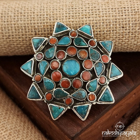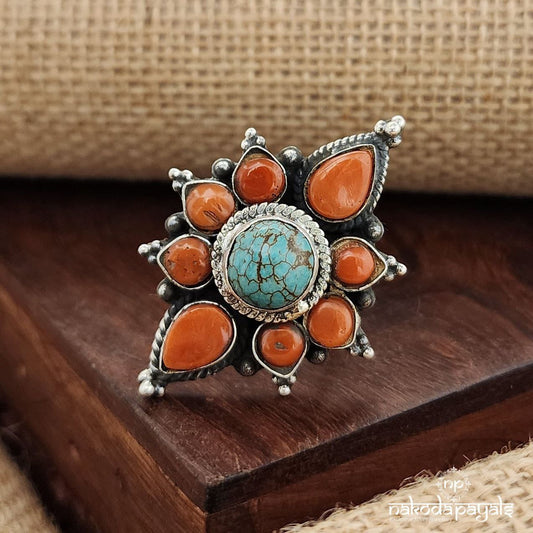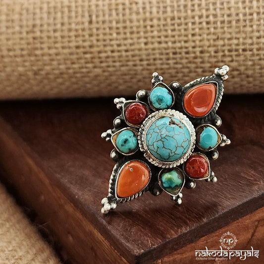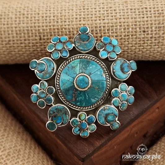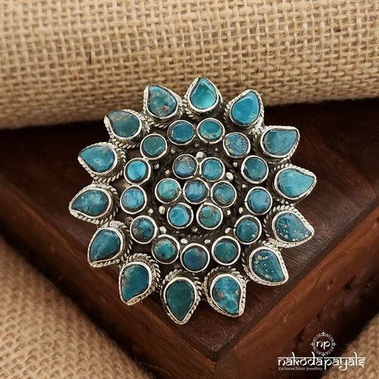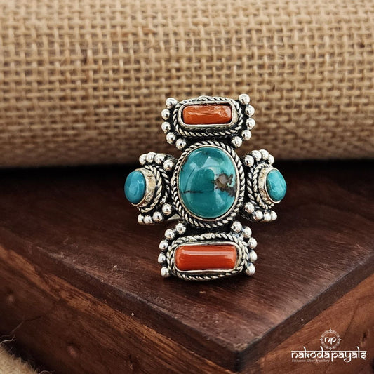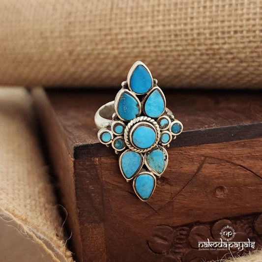 Torquoise Kundan Pearled Peocock Finger Ring (F2877)