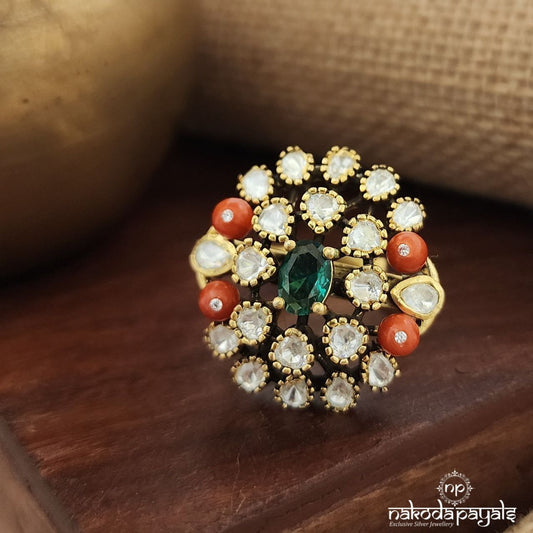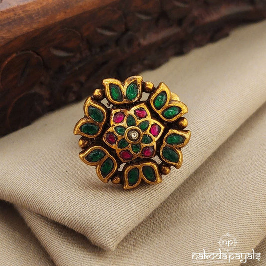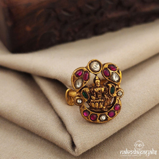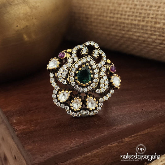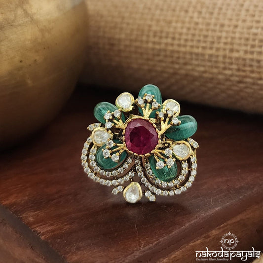 Coruscating Kemp Kundan Peocock Finger Ring (F2876)