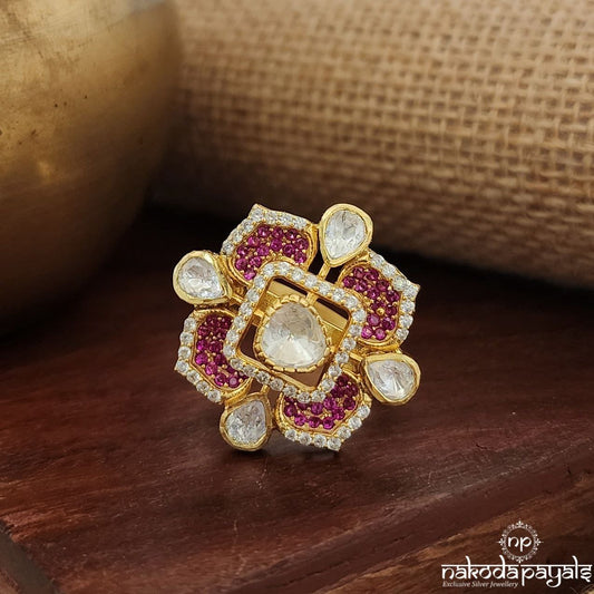 Coruscating Pearled Kundan Finger Ring (F2878)