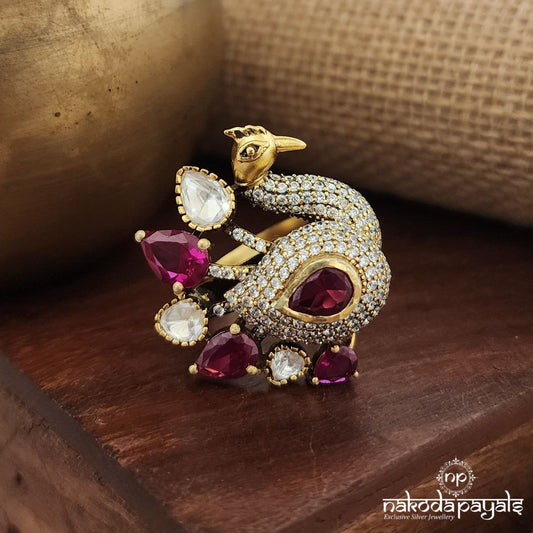 Proud Pearled Kundan Peocock Finger Ring (F2870)