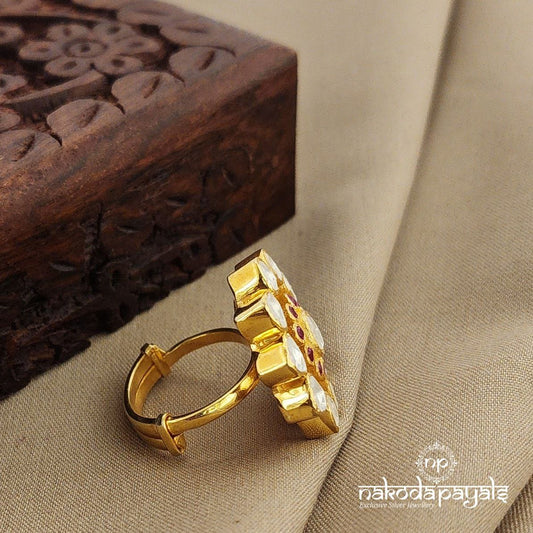 Rectangular Rec Kundan Adjustable Finger Ring (F2360)