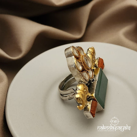 Peacock with Floral Adjustable Finger Ring (F2323)