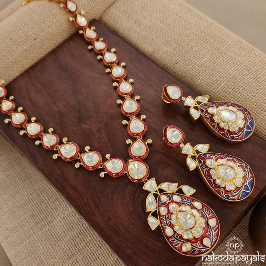 Moissanite Enameled Neckpiece With Earrings (Gn8750)