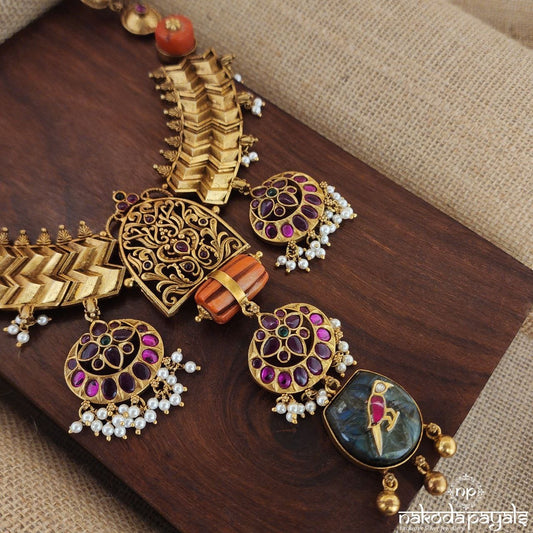 Grand MultiColor Peacock Neckpiece (Gn8288)