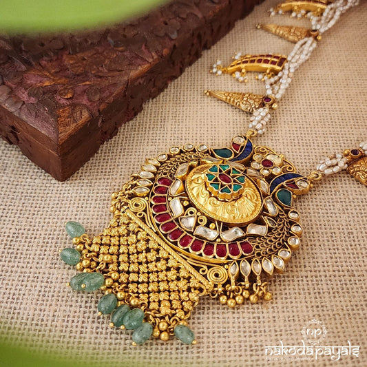 Moissanite Lakshmi Pearled Chain Neckpiece (Gn7493)