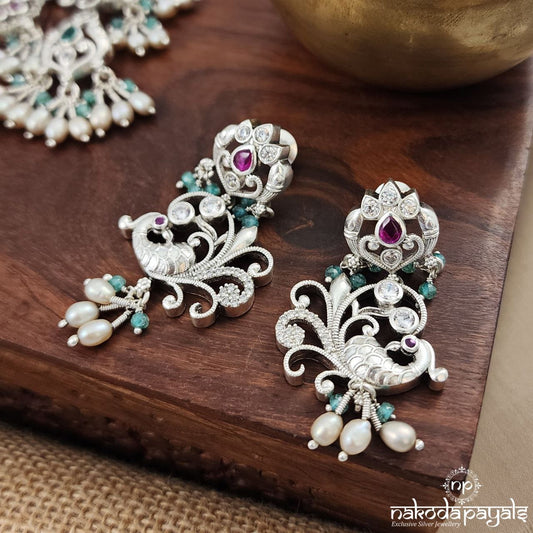 Peacock Floral Guttapusalu Long Neckpiece With Earrings (N9506)