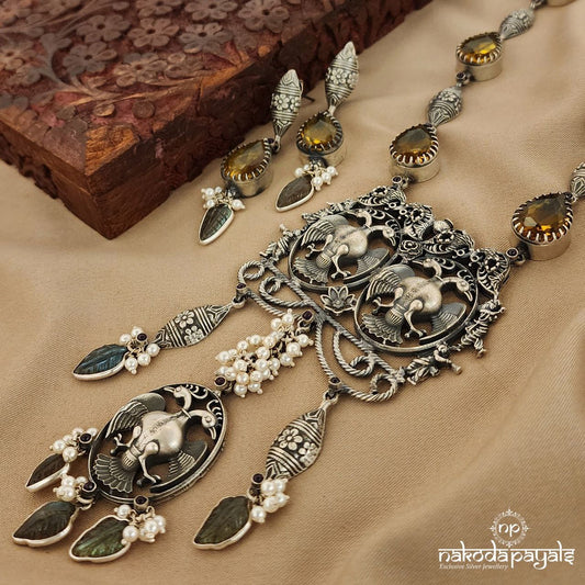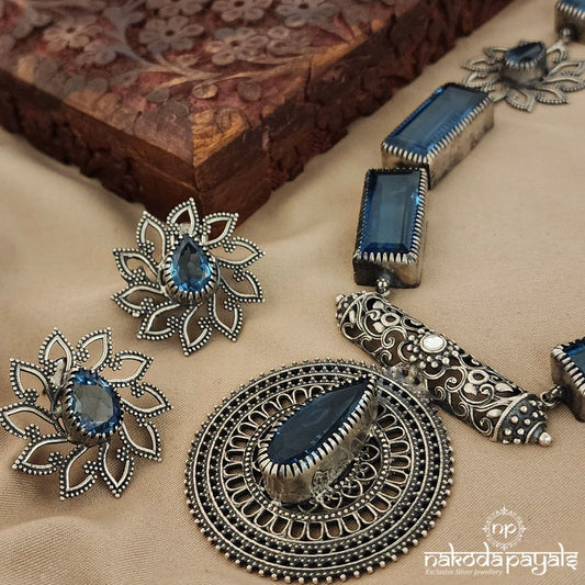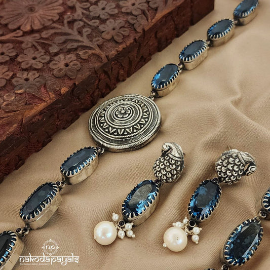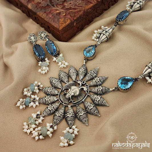Sea Blue Ganda Berunda Neckpiece With Earrings(N10306)