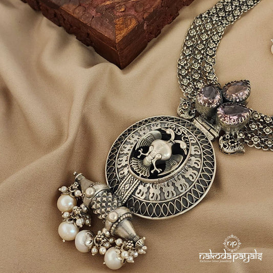 Amethyst Pearly Coined Neckpiece With Earrings (N9853)
