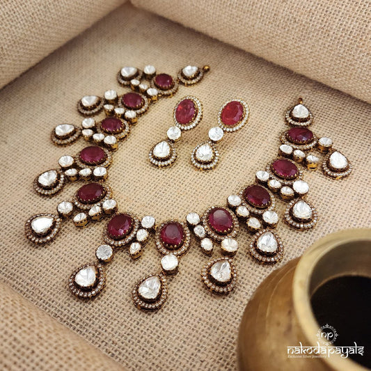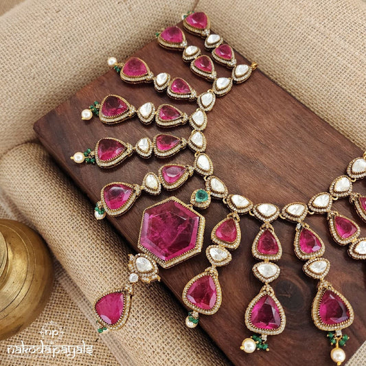 Gulab Drops Moissanite Neckpiece With Earrings (Gn8445)