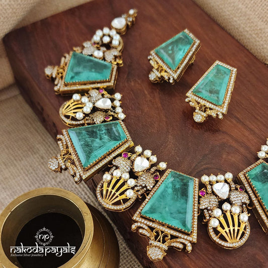 Green Moissanite Neckpiece With Earrings (Gn8463)