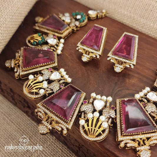 Gulab Moissanite Neckpiece With Earrings (Gn8441)