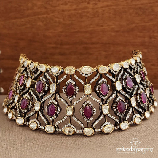 Red Gandaberunda Choker With Earrings (Gn9432)