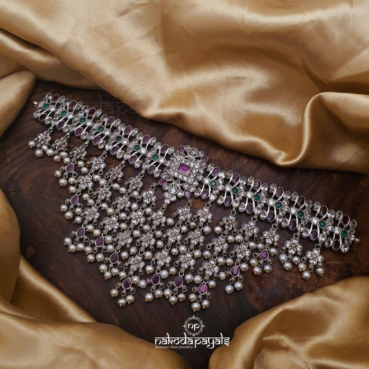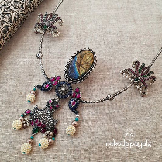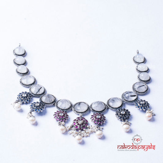 Rutilated Quartz Floral Pearl Drops Neckpiece