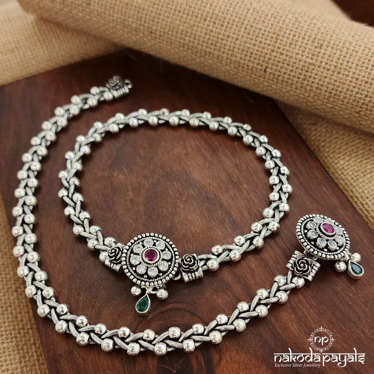 Pure silver anklets with semi precious stones