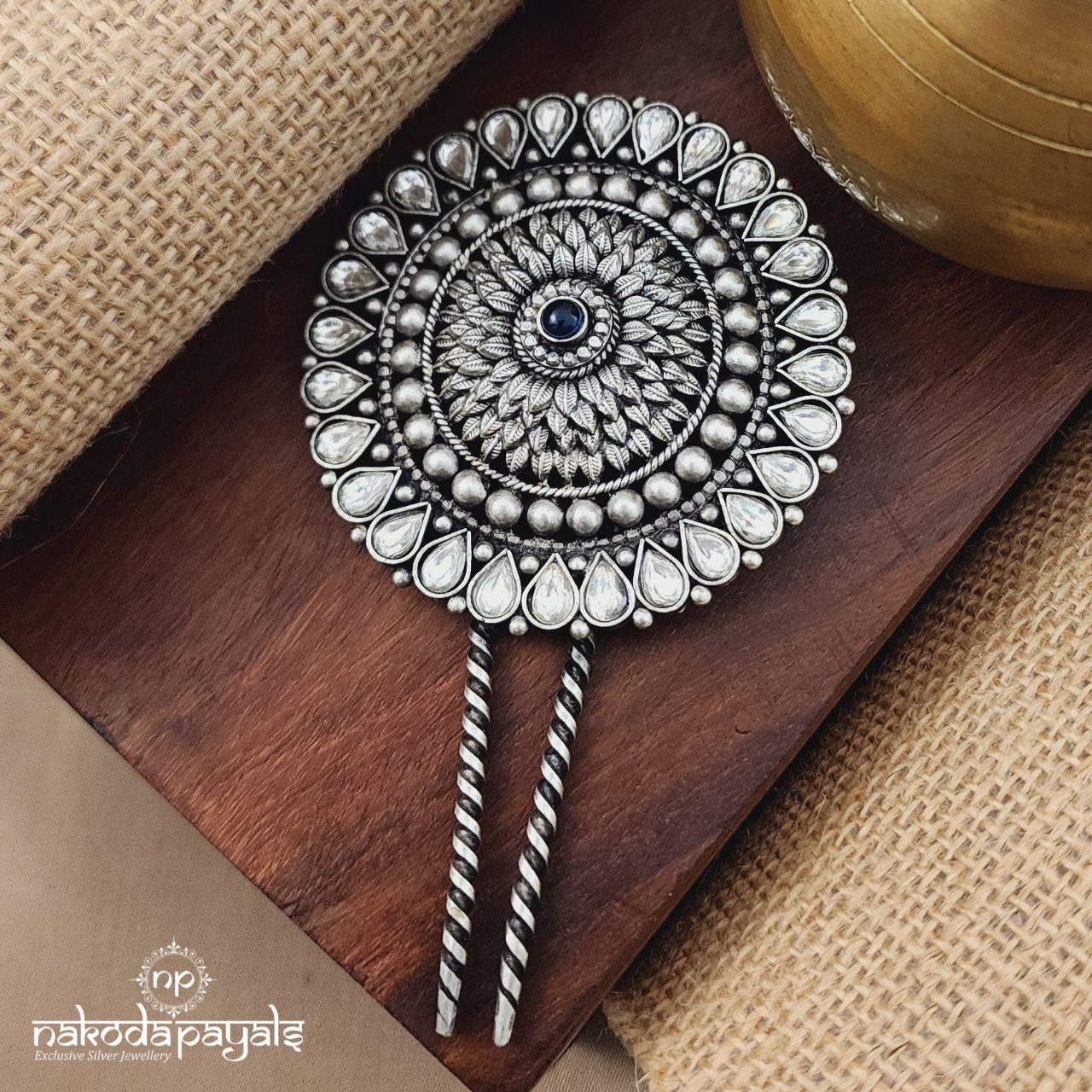 Pure silver hair accessory with oxidised finish and semi precious stones