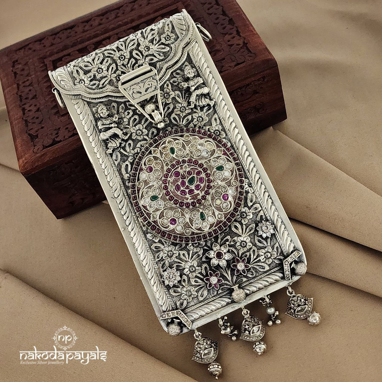 Pure Silver Clutch with semi precious stones