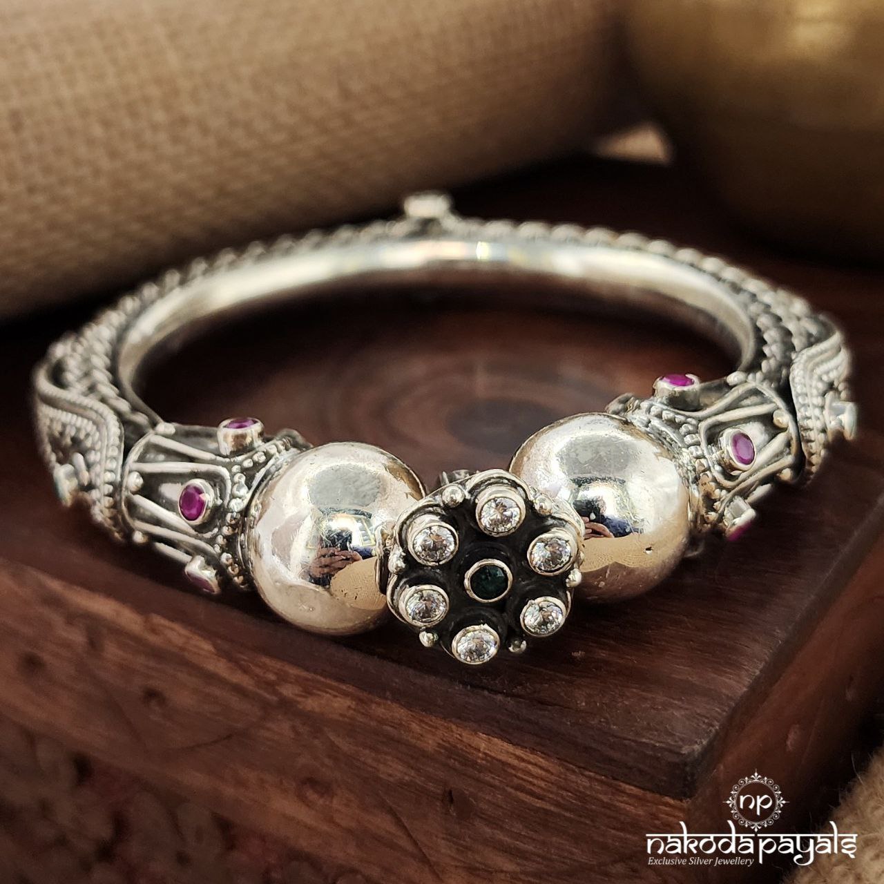 Pure silver with oxidised finish with semi precious stones