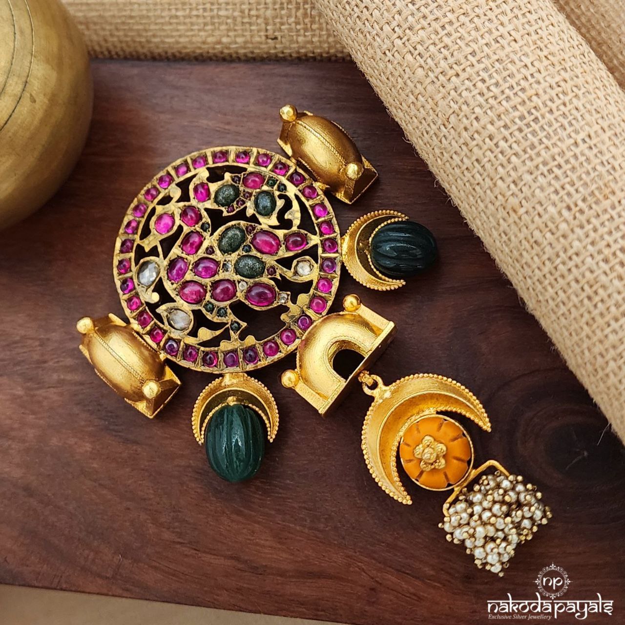 Pure silver with 22 carat gold plating and kundan stones and semi precious stones