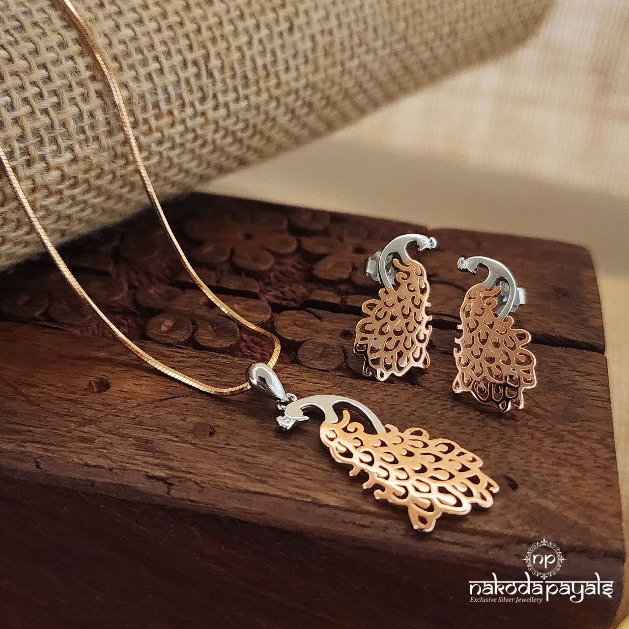 Dual Tone Peacock Neckpiece With Earrings (St3312)