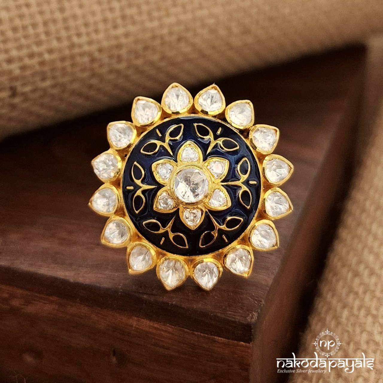 Pure silver Finger Ring 22 carat gold plating with moissanite stones