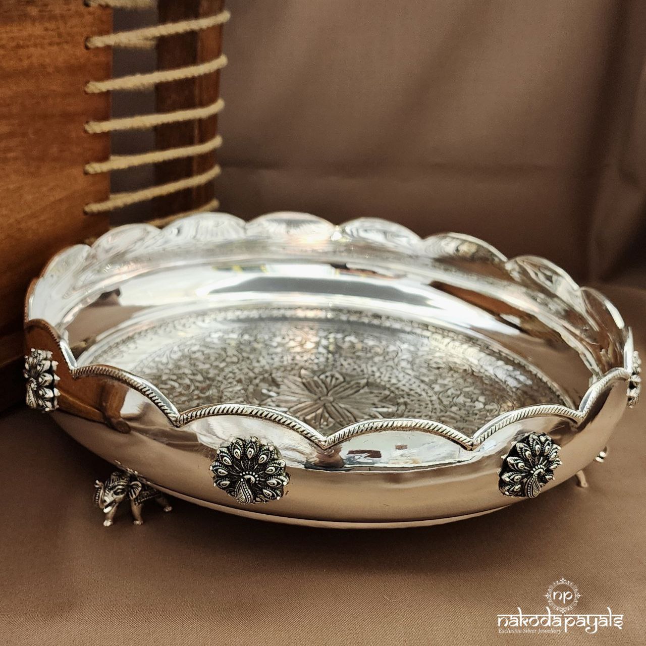 Pure silver article with enamel floral work , hand carving, chitae work and carved Boarder