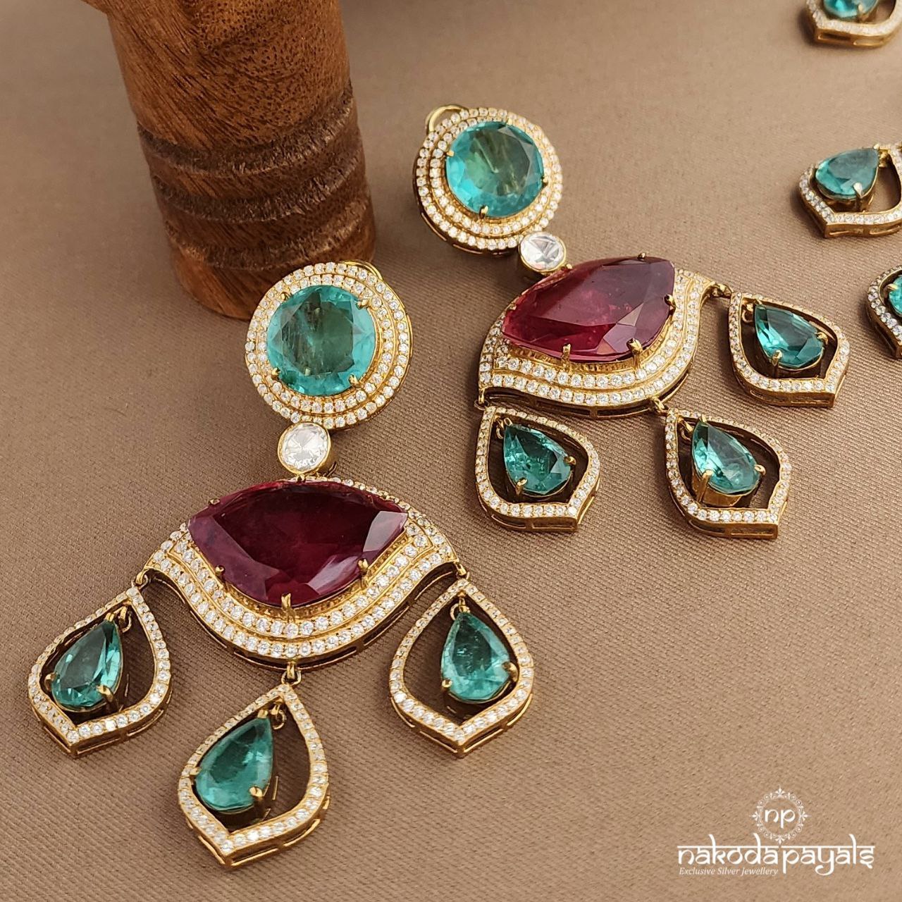 Glorious Grand Moissanite Neckpiece With Earrings (Gn9322)