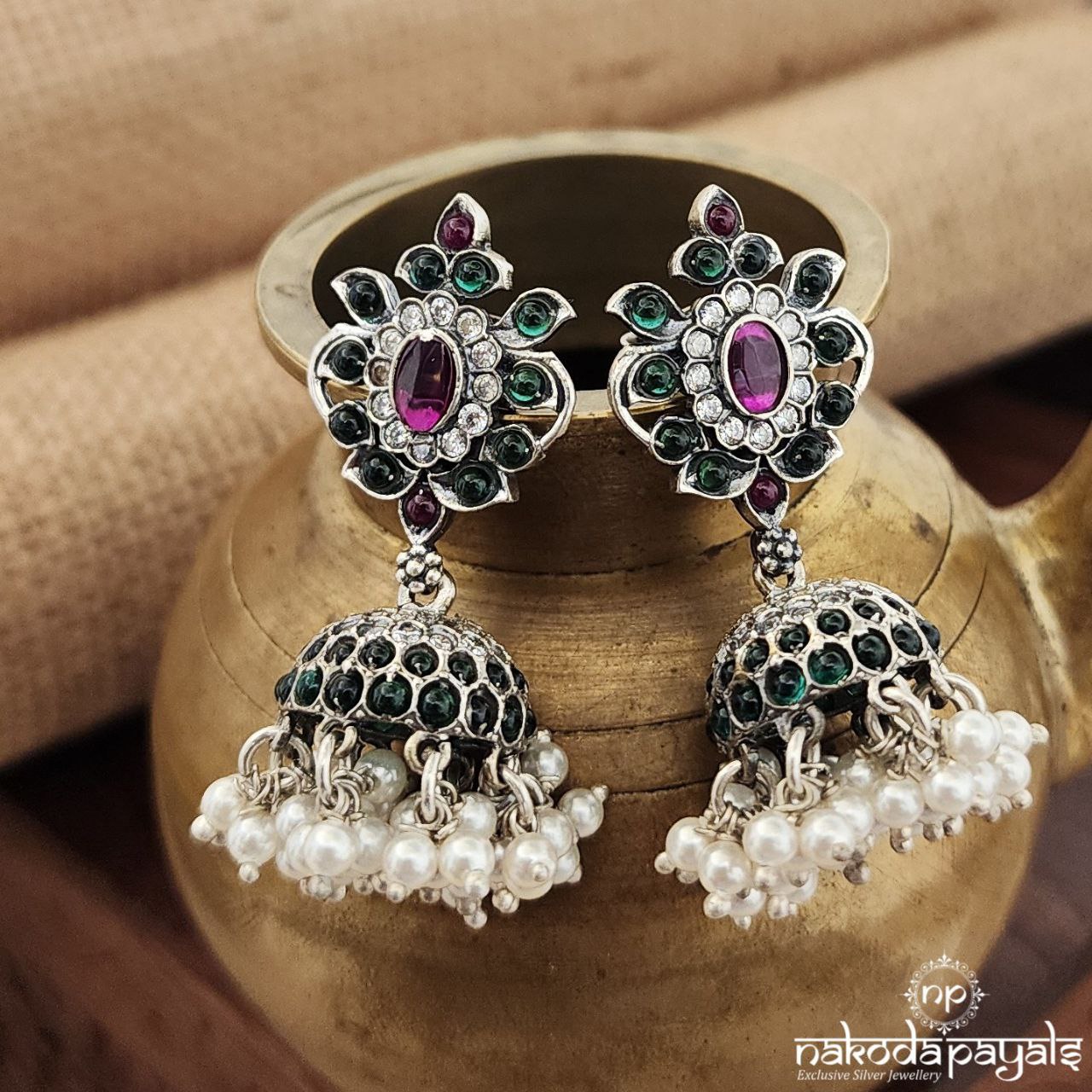 Pure silver with oxidised finish and semi precious stones and fresh water pearls