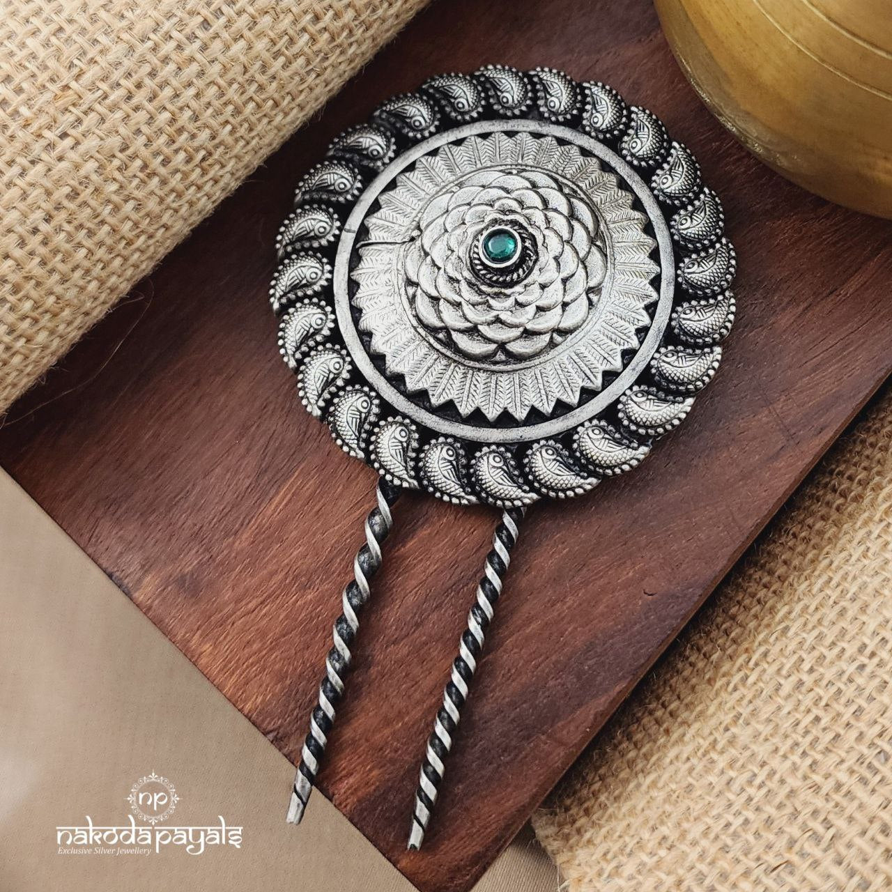 Pure silver hair accessory with oxidised finish and semi precious stones