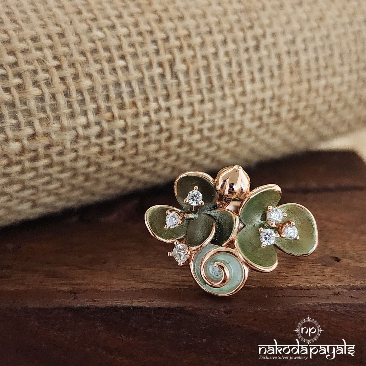 Greenish Blue Enameled Adjustable Ring (F2553)
