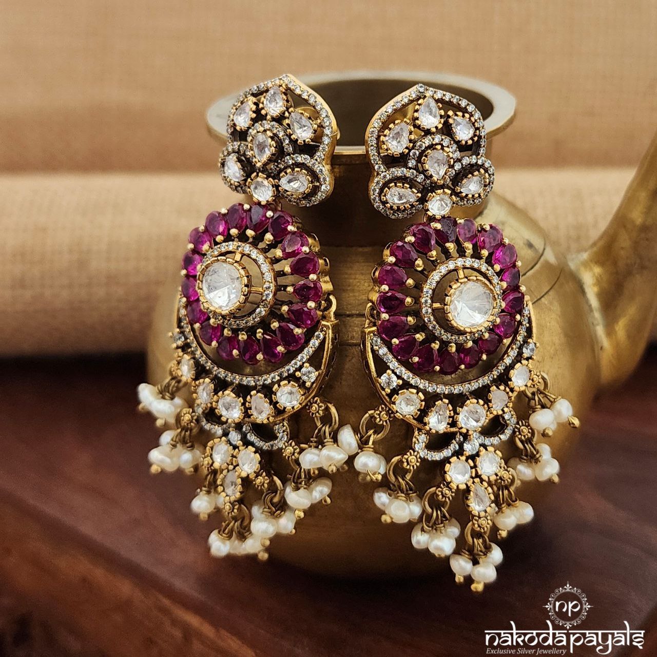 Half Moon Moissanite Stone With Fresh Water Pearls(Ge9210)