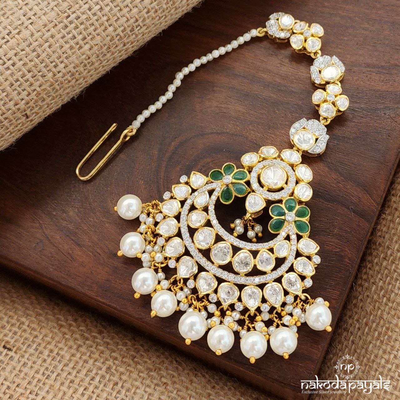 Moissanite Pearled Drop Maang Tika (Gm0957)