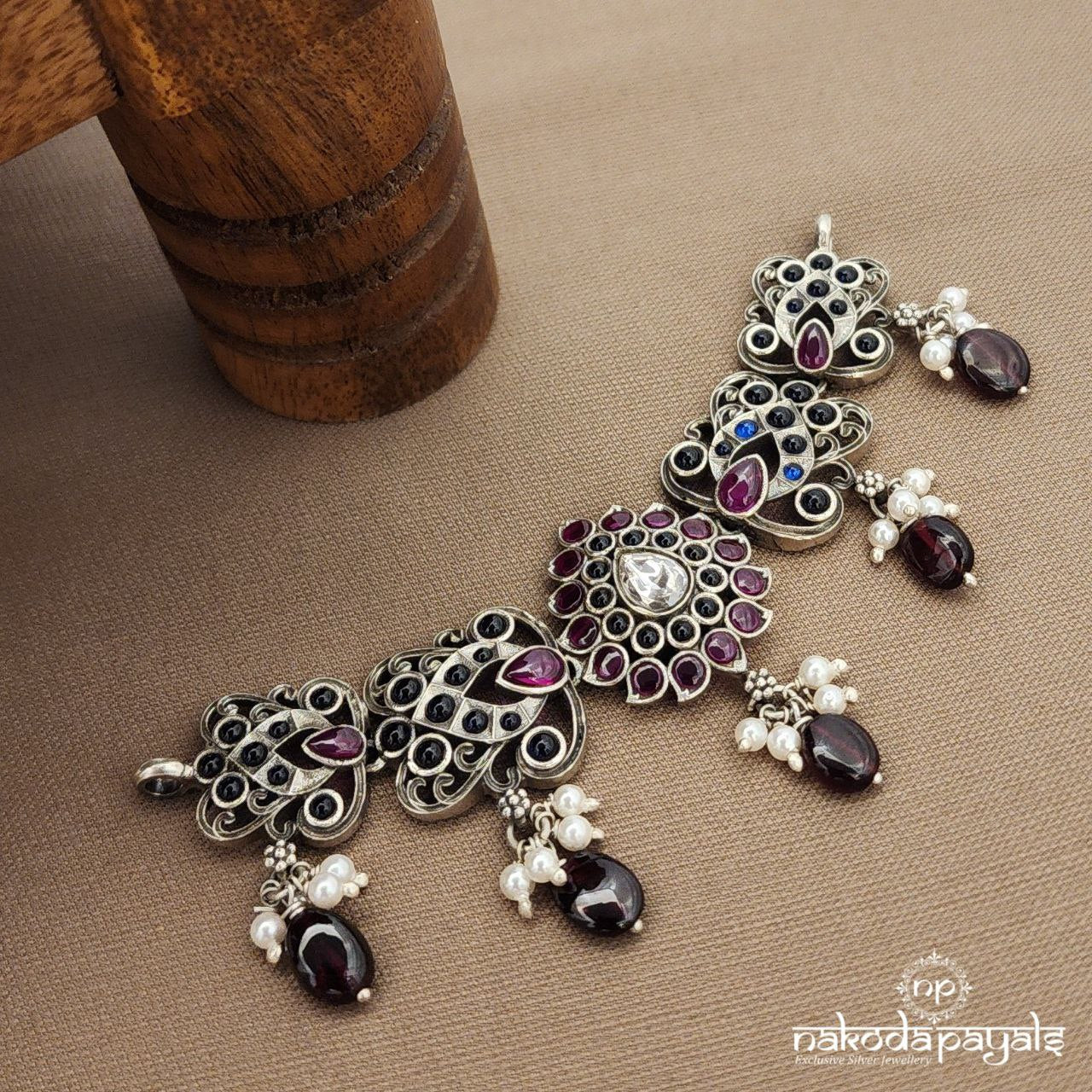 Pure silver oxidised finish with semi precious stones and fresh water pearls