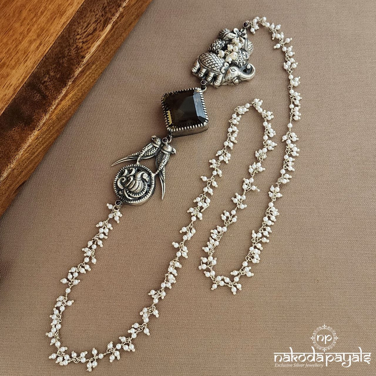 Pure silver oxidised finish with semi precious stones with fresh water pearls