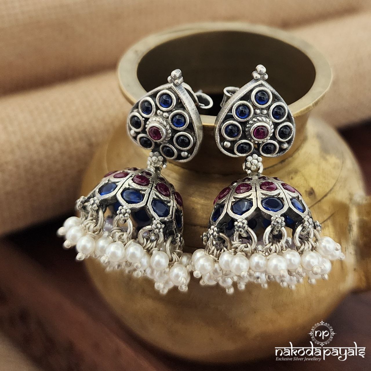 Pure silver with oxidised finish and semi precious stones and fresh water pearls