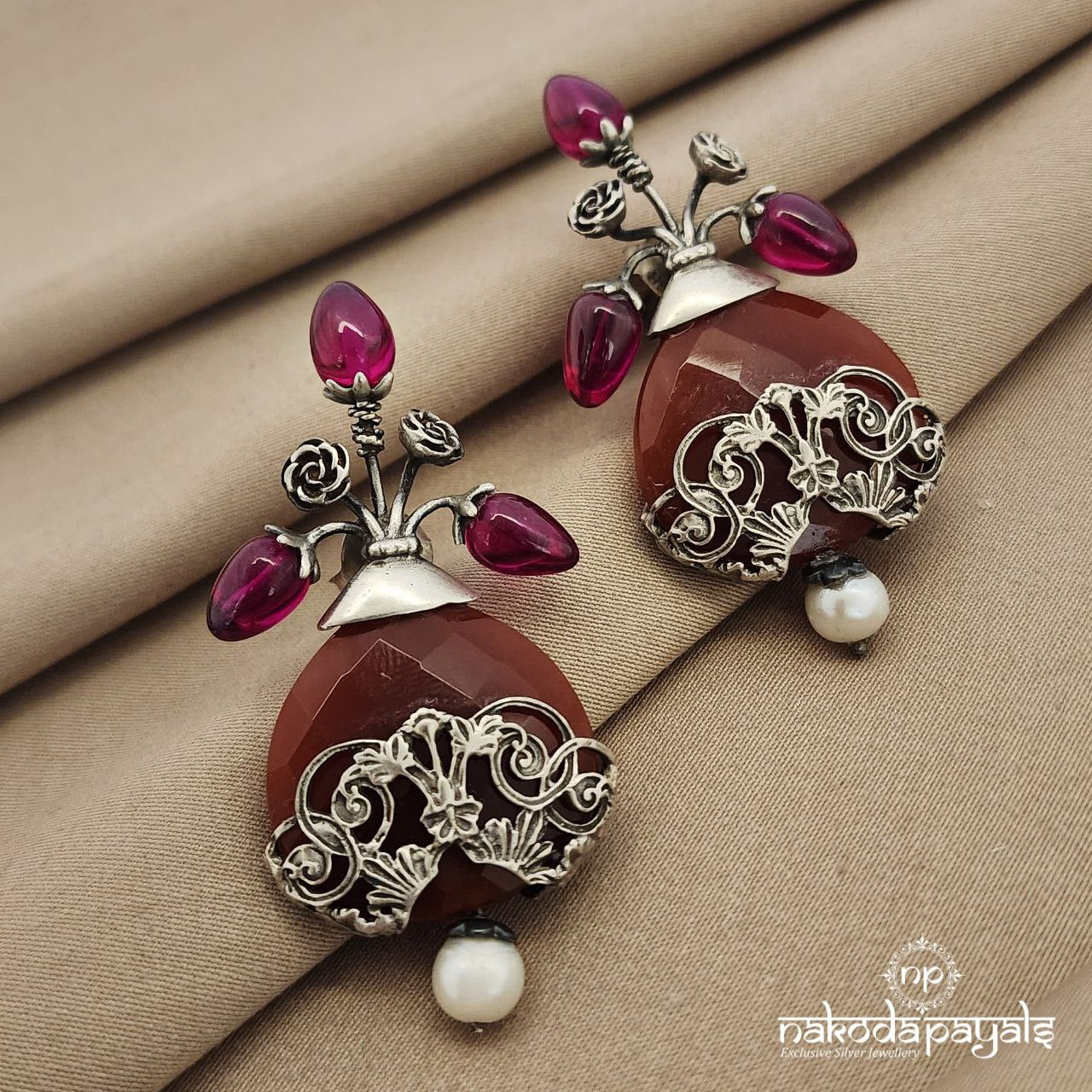 Pure silver oxidised finish with semi precious stones and fresh water pearls