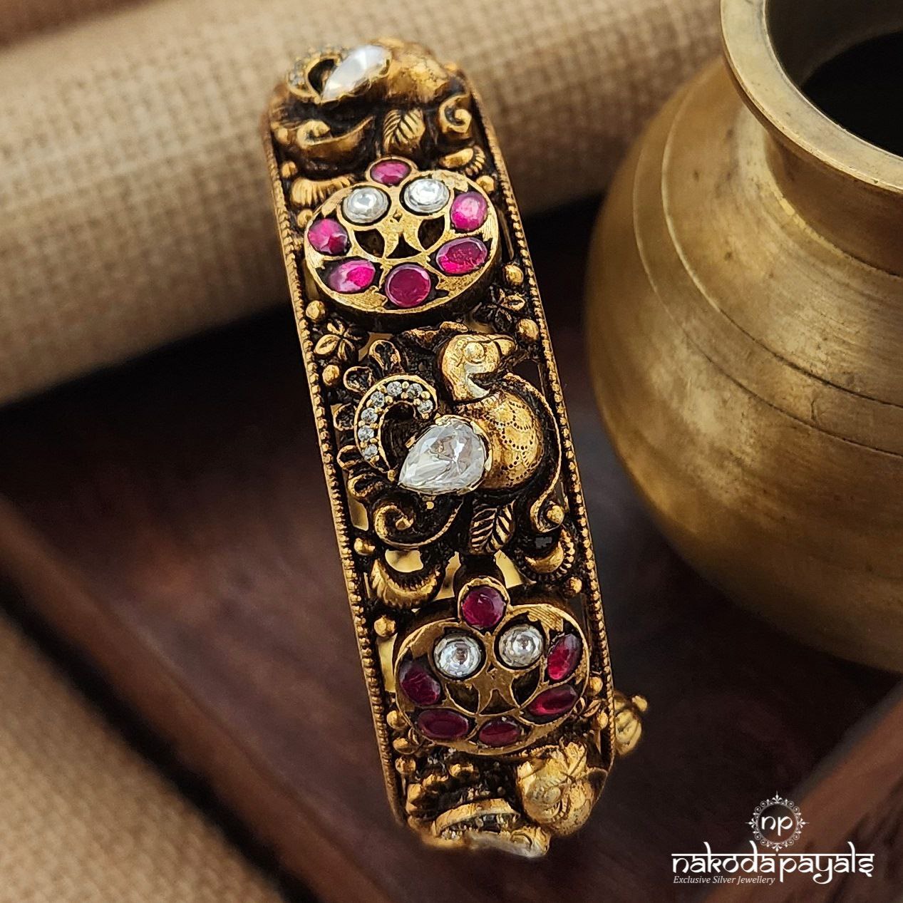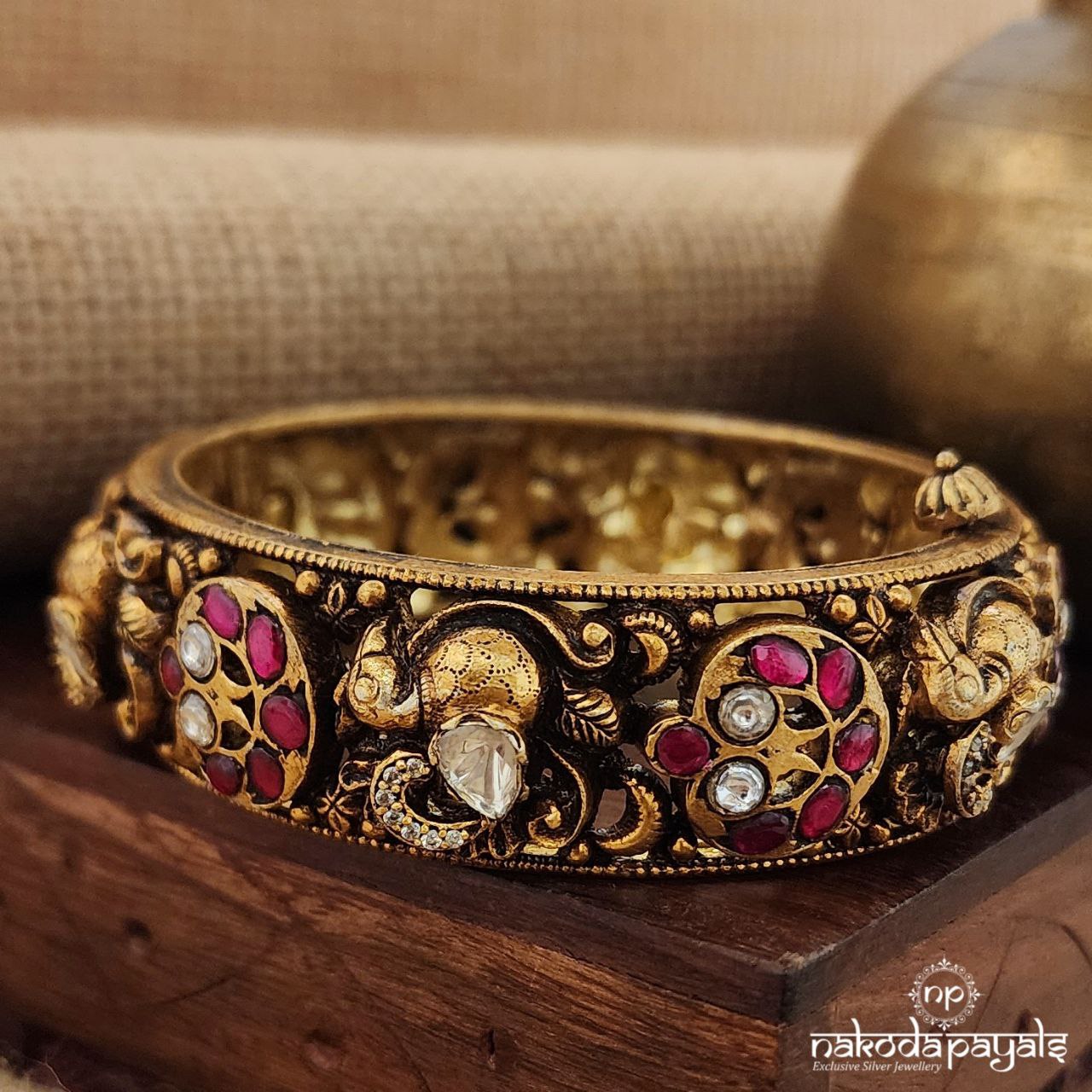 Pure silver with 22 carat gold plating and with kundan stones and moissanite stones
