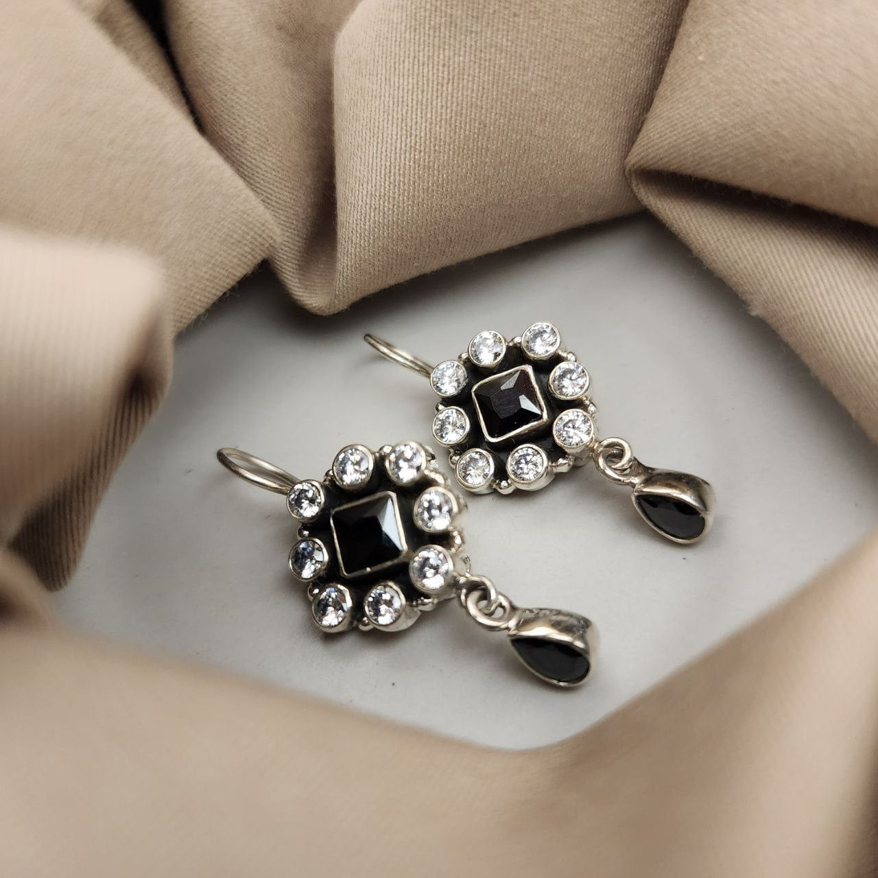 Pure silver with oxidised finish and semi precious stones