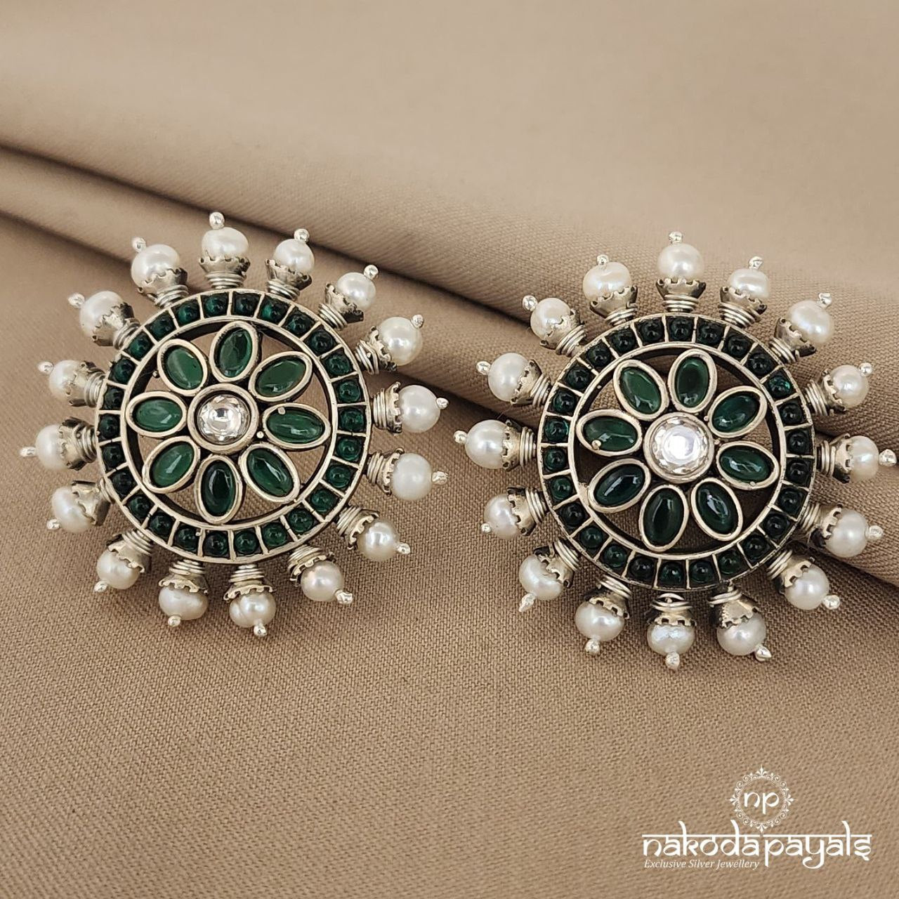 Pure silver oxidised finish with semi precious stones and fresh water pearls