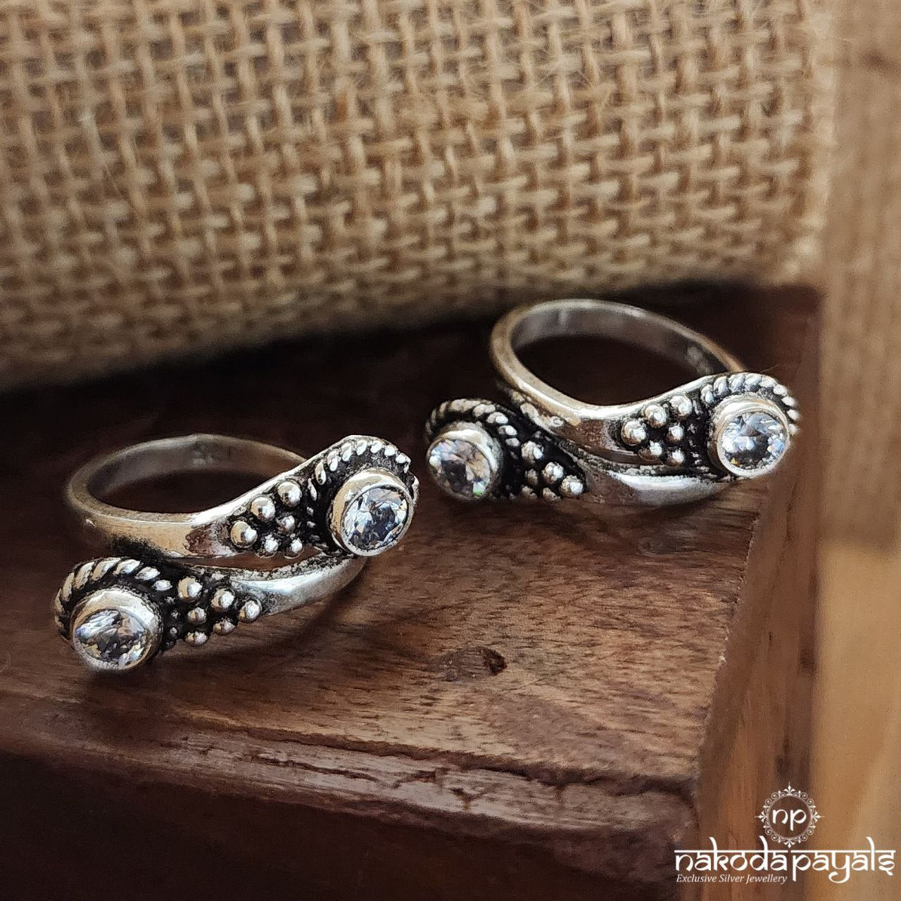 Pure silver toerings with oxidised finish and cutstones